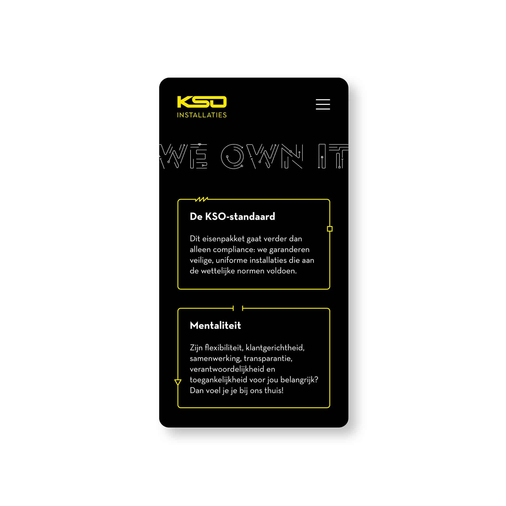 Verwachtingen, niet iedereen kan ermee omgaan. Mensen verwachten steeds slimmere gebouwen. Comfortabel, duurzaam en volautomatisch. Wat de verwachtingen ook zijn, KSO ownt het. Bij deze mentaliteit ontwikkelden wij een nieuwe visuele identiteit met een passende pay-off: We Own it.